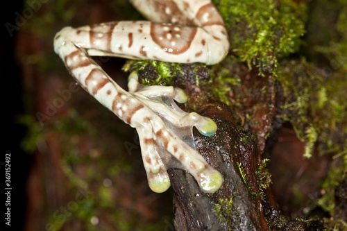 © slowmotiongli, Naklejka premium Amazon Milk Frog, phrynohyas resinifictrix, Adult, Close-up of Leg