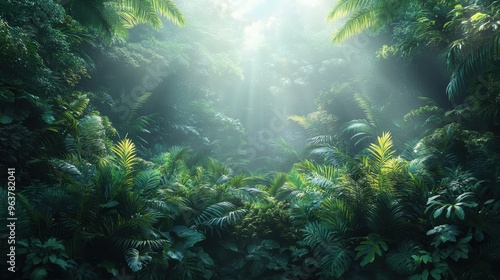 © sa-photo, Fototapeta premium Amazon rainforest with dense foliage on white background