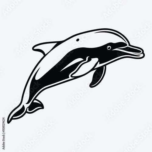 Fototapeta premium Amazon River Dolphin line art White background illustration Generative Ai