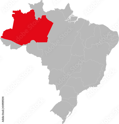 © infinetsoft, Fototapeta premium Amazonas state highlighted on Brazil map. Business concepts and backgrounds.