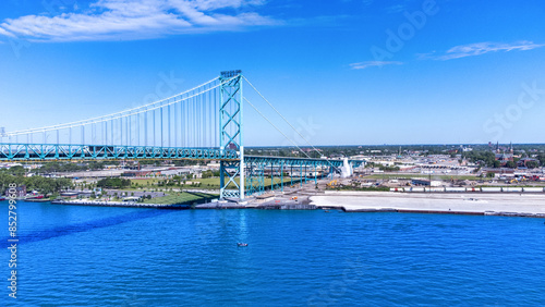 Fototapeta premium Ambassador Bridge over the Detroit River. The structure joins Canada and the USA