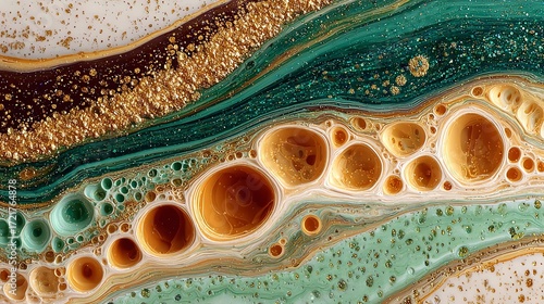 Obraz premium Amber and Moss Fluid Ink Marbling with Gold Glitter