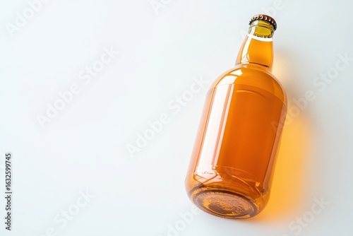 Fototapeta premium Amber glass bottle of beverage, angled view.
