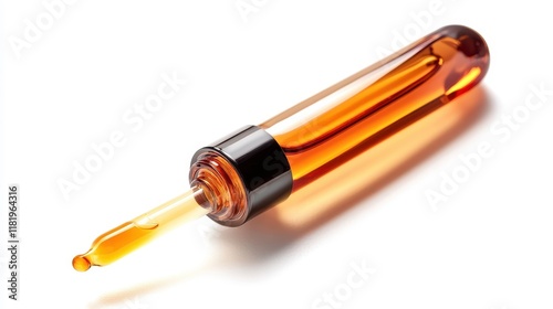© Kullanat, Naklejka premium Amber Glass Dropper Bottle with Liquid Isolated on White
