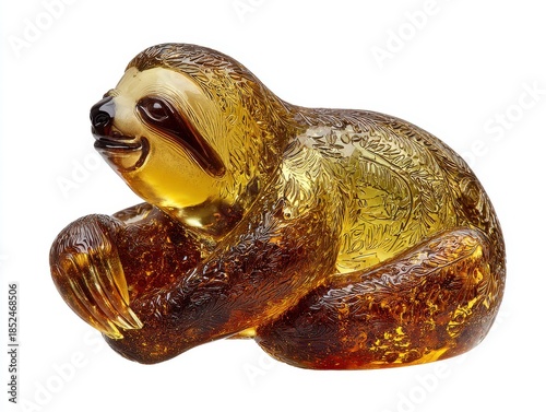 © Yothin, Obraz premium Amber Sloth Figurine Detailed Sculpture Capturing Slow Life And Precious Moments In Warm Golden Light