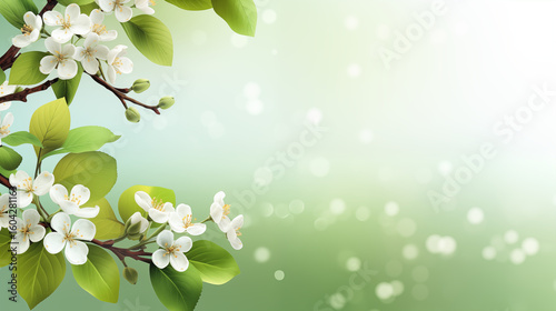 © FlyStun, Fototapeta premium Ambiance printanière, fleurs blanches, sur les branches d'un arbre, cerisier. Arrière-plan de flou et lumière claire, ensoleillé. Printemps, été. Pour conception et création graphique