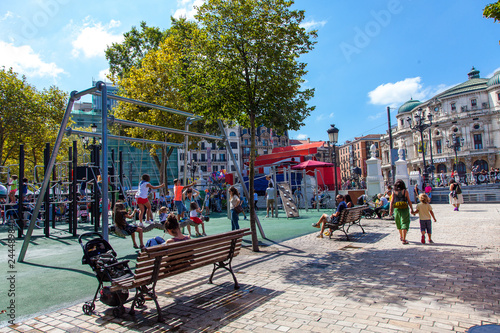 © M. Cuadro, Fototapeta premium Ambiente festivo en los jardines de El Arenal en la Aste Nagusia-Semana Grande de Bilbao, Vizcaya, País Vasco.
