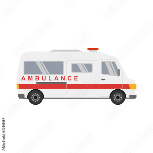 Naklejka premium Ambulance car. Hospital transport medical care clinic. flat design ambulance cars with sirens in white background. Ambulance flat icon, medicine and healthcare, transport sign vector graphics