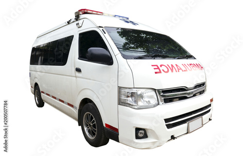 © oatautta, Naklejka premium Ambulance car isolated on white background of file with Clipping Path .