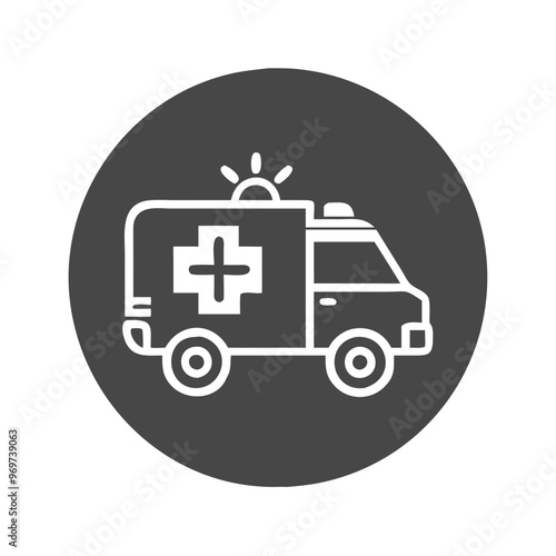 © Madlen Gray, Fototapeta premium ambulance icon on dark background, emergency vehicle for health services, vector illustration, copy space