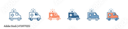 © elmantastic, Fototapeta premium ambulance icon set hospital emergency transportation rescue car vector with siren alert medical transport service symbol illustration