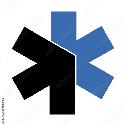 Obraz premium Ambulance icon with black and blue arrows.