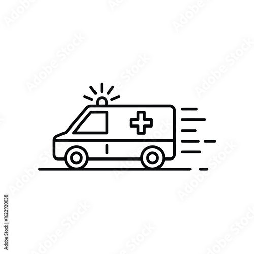 Fototapeta premium Ambulance icon with flashing lights and motion lines