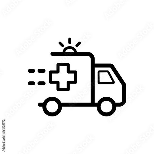 Fototapeta premium Ambulance line icon. Disease, immunity, thermometer, doctor, patient, prescription, treatment, drugs, recommendations, advice. health concept. Vector black line icon on white background