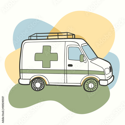 © Krasavina Alena, Naklejka premium Ambulance Van Illustration in Minimalist Style with Pastel Background