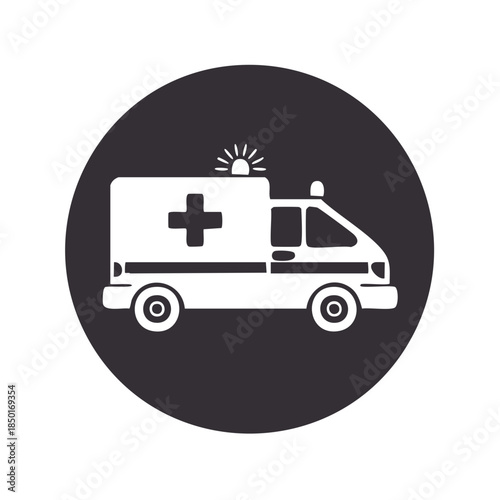 © Yana, Fototapeta premium Ambulance with Cross Symbol in Round Frame - Medical Transport Vector Illustration