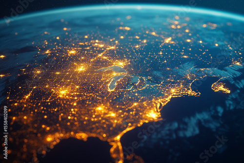 © Jesmin art hut, Fototapeta premium America at night city electric lights earth aerial view