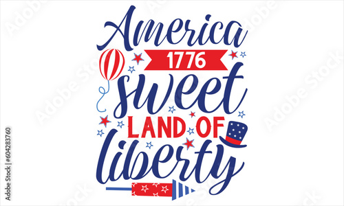 Fototapeta premium America 1776 Sweet Land Of Liberty - Fourth Of July T Shirt Design, Hand...