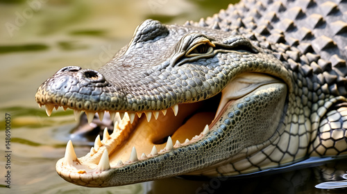 Fototapeta premium American alligator with it's mouth wide open showing dangerous teeth