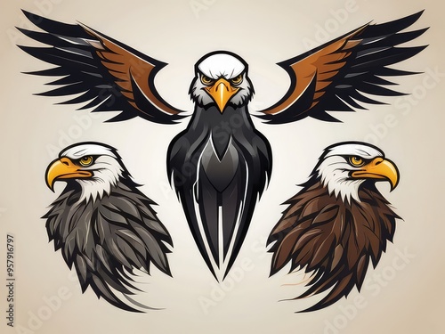 © Illustrations, Obraz premium american bald eagle,Eagle Captured In Direct View Feathers Peaking