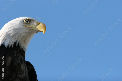 Obraz premium American bald eagle flying on blue sky