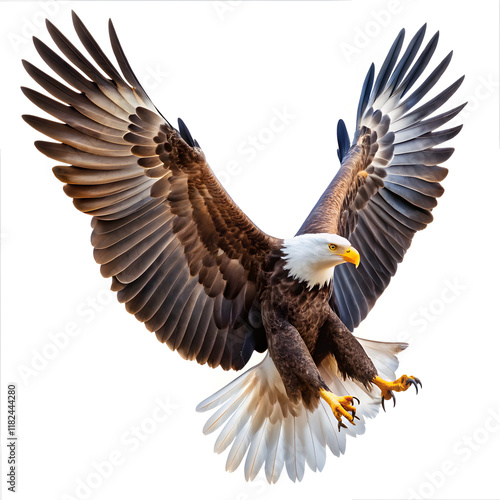 Naklejka premium American bald eagle flying on white background