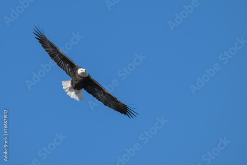 Obraz premium American bald eagle in flight, wings fully extended.