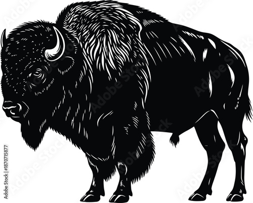 © Rising Monk, Obraz premium American Bison Wild Animal Illustration Vector