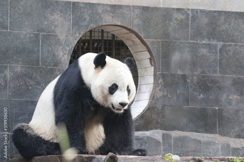 © foreverhappy, Fototapeta premium American Born Female Panda, Bei Bei, is Eating Bamboo Leaves