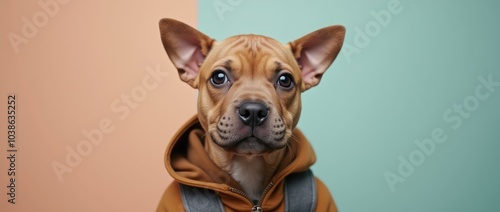 © andrenascimento, Obraz premium american bully wearing human clothing solid color background studio style portrait photo