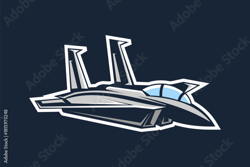 © Yuniar20, Obraz premium American cold war jet fighter plane vector illustration. simple aircraft logo, military equipment.