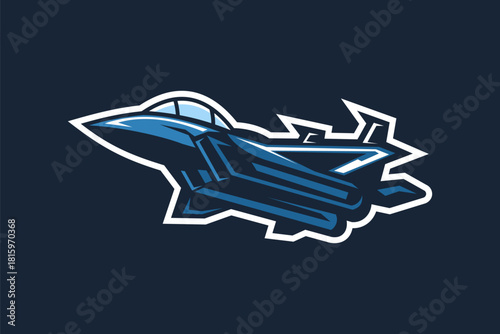 © Yuniar20, Obraz premium American cold war jet fighter plane vector illustration. simple aircraft logo, military equipment.