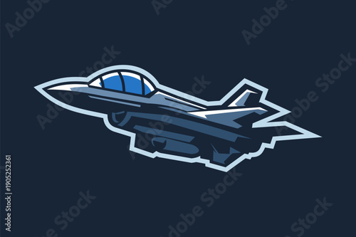 © Yuniar20, Fototapeta premium American cold war jet fighter plane vector illustration. simple aircraft logo, military equipment.