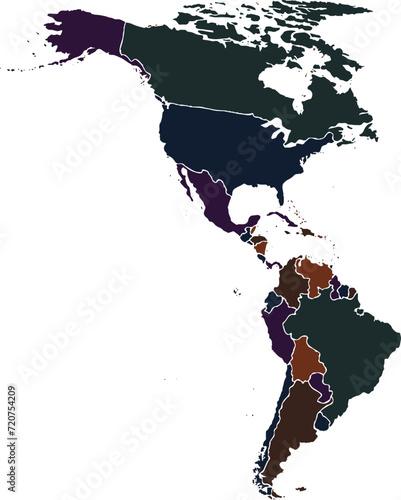 Obraz premium AMERICAN CONTINENT MAP COLOR MAP WITH COUNTRIES