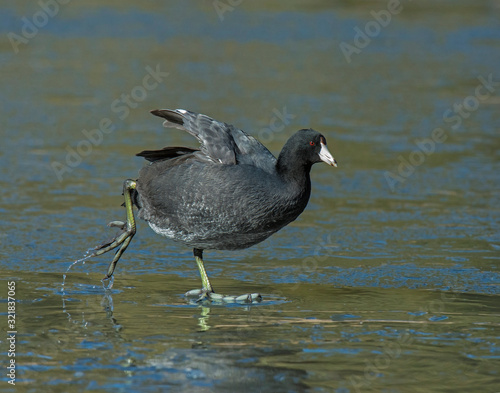© David McGowen, Fototapeta premium American Coot walking on a frozen pond