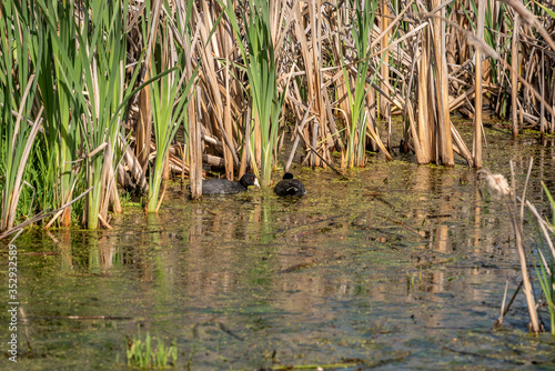 Fototapeta premium American Coots At Turnbull National Wildlife Refuge