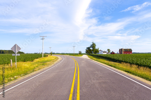 © maksymowicz, Naklejka premium American Country Road With Blue Sky