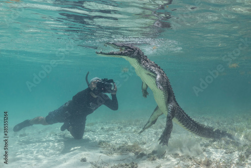 © Angiolo, Obraz premium American Crocodile under Water, Mexico