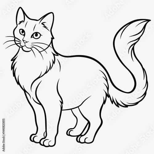 © lokshmon, Fototapeta premium American Curl silhouette white background illustration, Generative Ai