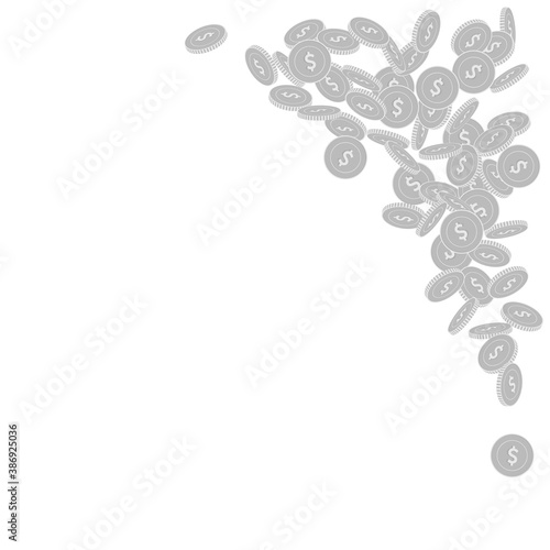© Begin Again, Obraz premium American dollar coins falling. Scattered black and
