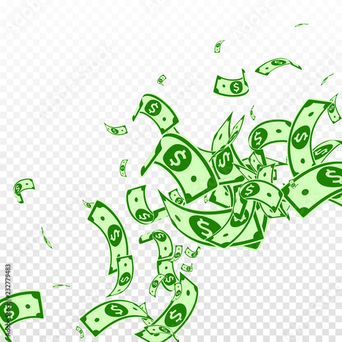 © Begin Again, Obraz premium American dollar notes falling. Messy USD bills on