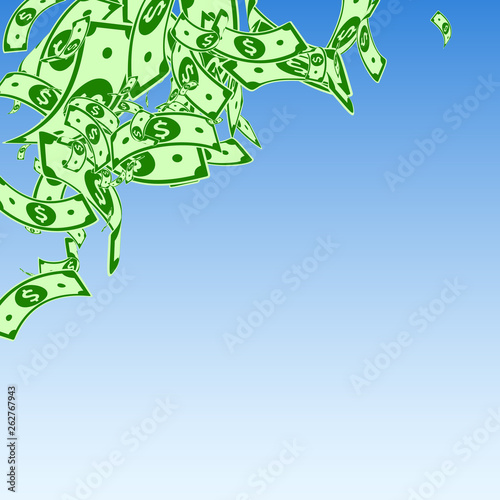 © Begin Again, Naklejka premium American dollar notes falling. Messy USD bills on