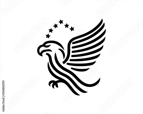 © Mamun360, Fototapeta premium American Eagle logo design icon symbol vector illustration. Silhouette eagle bird icon vector template