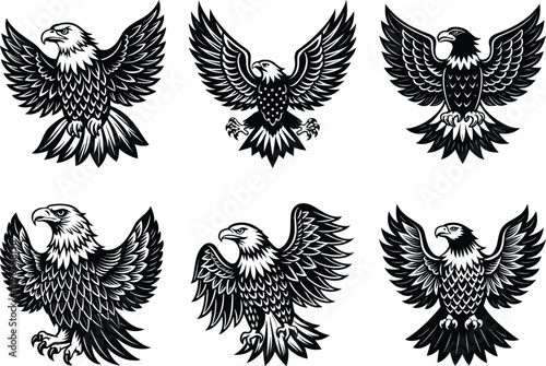 Fototapeta premium American Eagle Vector Silhouette Clipart Pet Animal SVG Design Bundle
