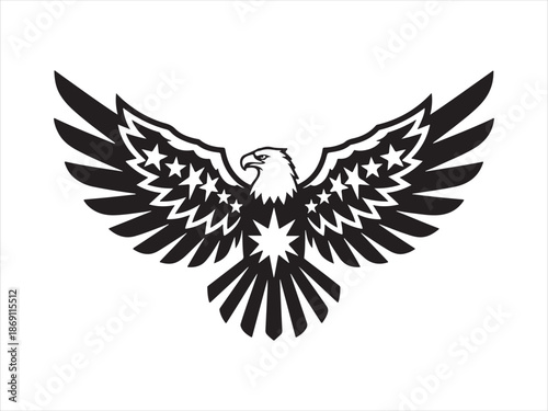 © Creative Ai Shop, Obraz premium American eagle with flag vector illustration, Patriotic eagle with American flag wings silhouette vector illustration