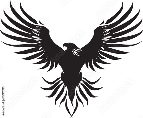 © Qurban Vector & Ai, Obraz premium American eagle with wings, flying vector eagle Black silhouette on white background