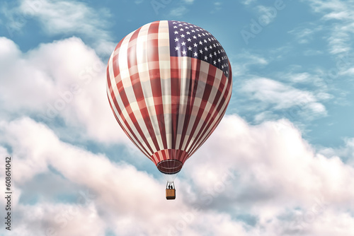 Fototapeta premium American flag air balloon on sky, closeup with copy space. generative ai