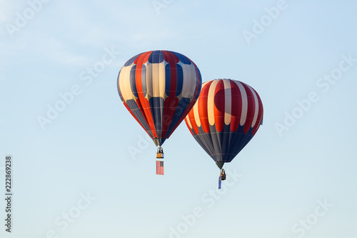© ecummings00, Naklejka premium American flag and Nevada state flag flying with hot air balloons