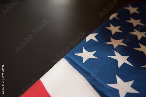 © Supagrit Ninkaesorn, Fototapeta premium American flag close up in dark background with copy space