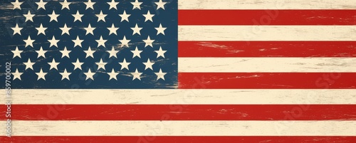 Naklejka premium American Flag Logo with Red, White, and Blue on Solid Background, Simple Design with White Space